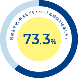 「働き方意識調査アンケート」でも、7割以上の方が「残業をせず、平日もプライベートの時間を確保したい」と回答。