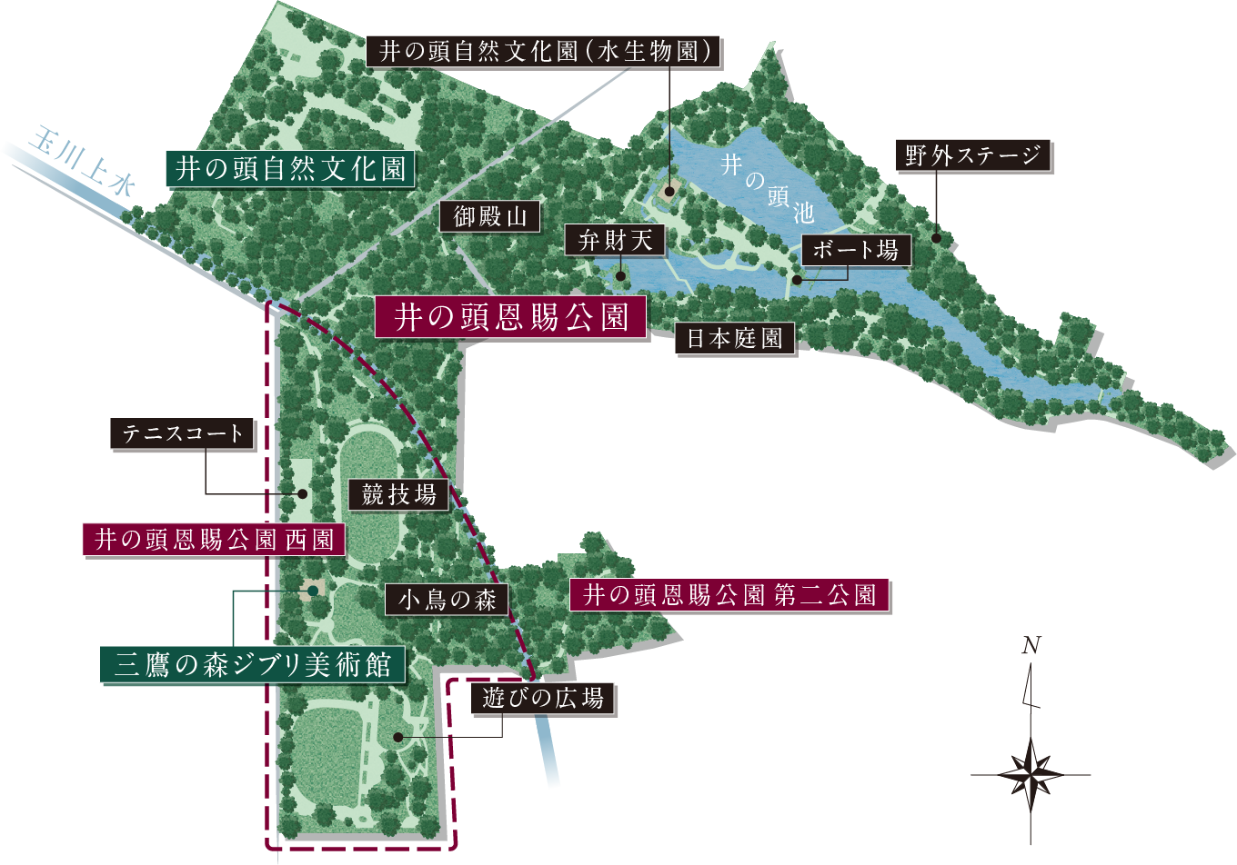 「三鷹の森ジブリ美術館」や「遊びの広場」も擁する西園、